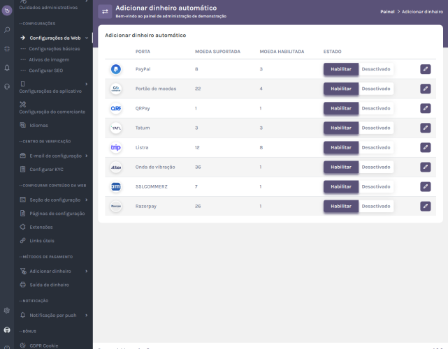 Configure o gateway de pagamento: integre perfeitamente os gateways de pagamento para facilitar transações tranquilas e seguras. Conecte-se com provedores de pagamento populares e ofereça aos usuários opções de pagamento convenientes.