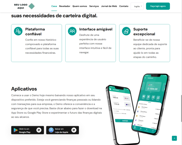 Seção de download de aplicativos: forneça uma maneira conveniente para os usuários acessarem seus aplicativos Android e iOS. Aumente a visibilidade e impulsione os downloads de aplicativos para garantir um envolvimento contínuo em todos os dispositivos.