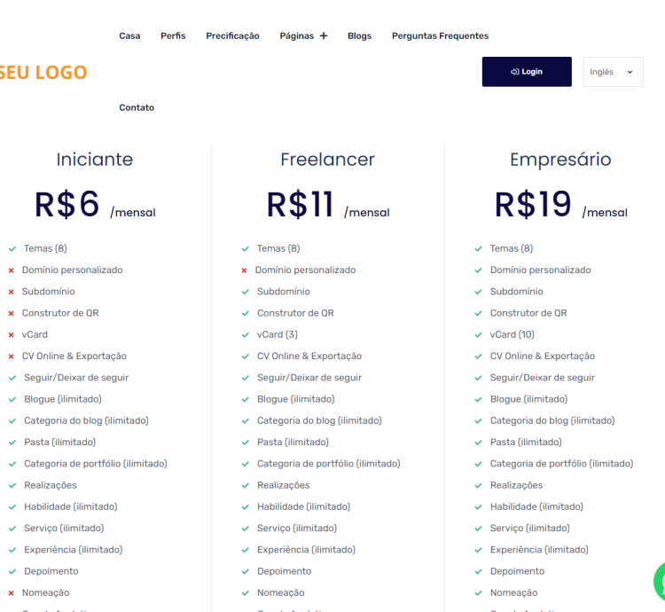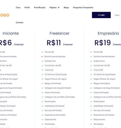 Os usuários podem adquirir pacotes e acessar um painel para criar um portfólio multilíngue, vCards e currículos ilimitados. Todos esses elementos são compatíveis com RTL, e os usuários podem exibi-los em seus próprios domínios ou subdomínios personalizados. O sistema também oferece um Construtor de QR Codes avançado para gerar códigos personalizados para qualquer URL.