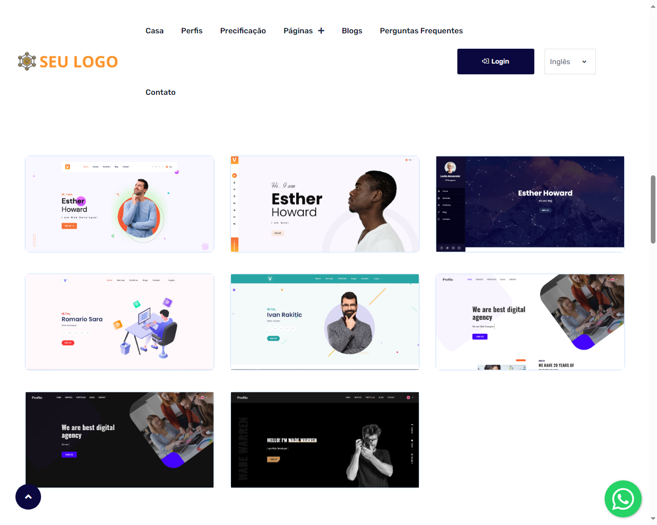 - 8 modelos de portfólio prontos.