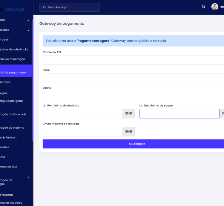 - Gerenciamento de logotipo e favicon.