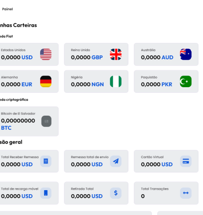 Remessa e retirada de dinheiro: Suporta transferências internacionais de dinheiro e retrada de dinheiro.