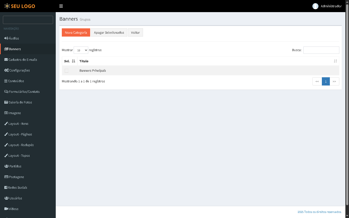 Gerenciamento de banners, blocos e e-mails
