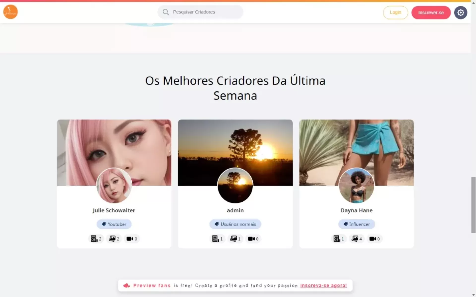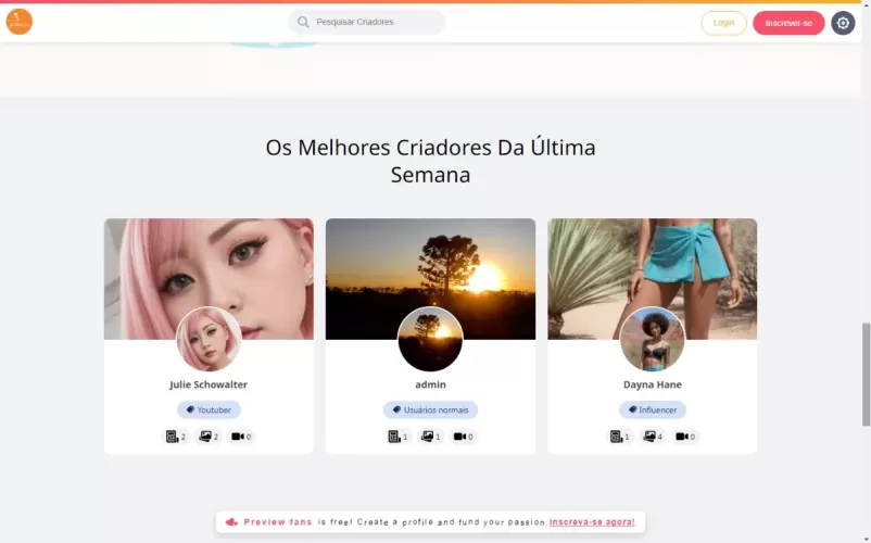 - Os criadores podem gerenciar seu painel (usuários normais não têm painel)