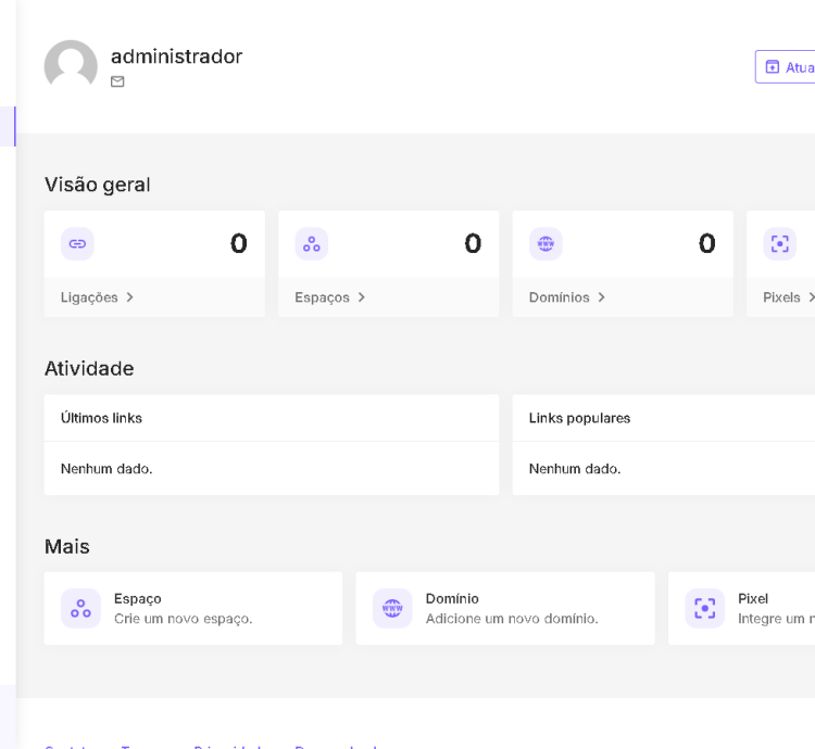 PAINEL – Obtenha a visão geral da conta rapidamente. Gerencie rapidamente seus links mais recentes ou populares.
