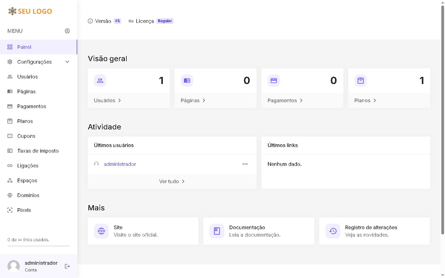Clique aqui para ver o demo (o usuário de demonstração tem acesso ao painel de administração)