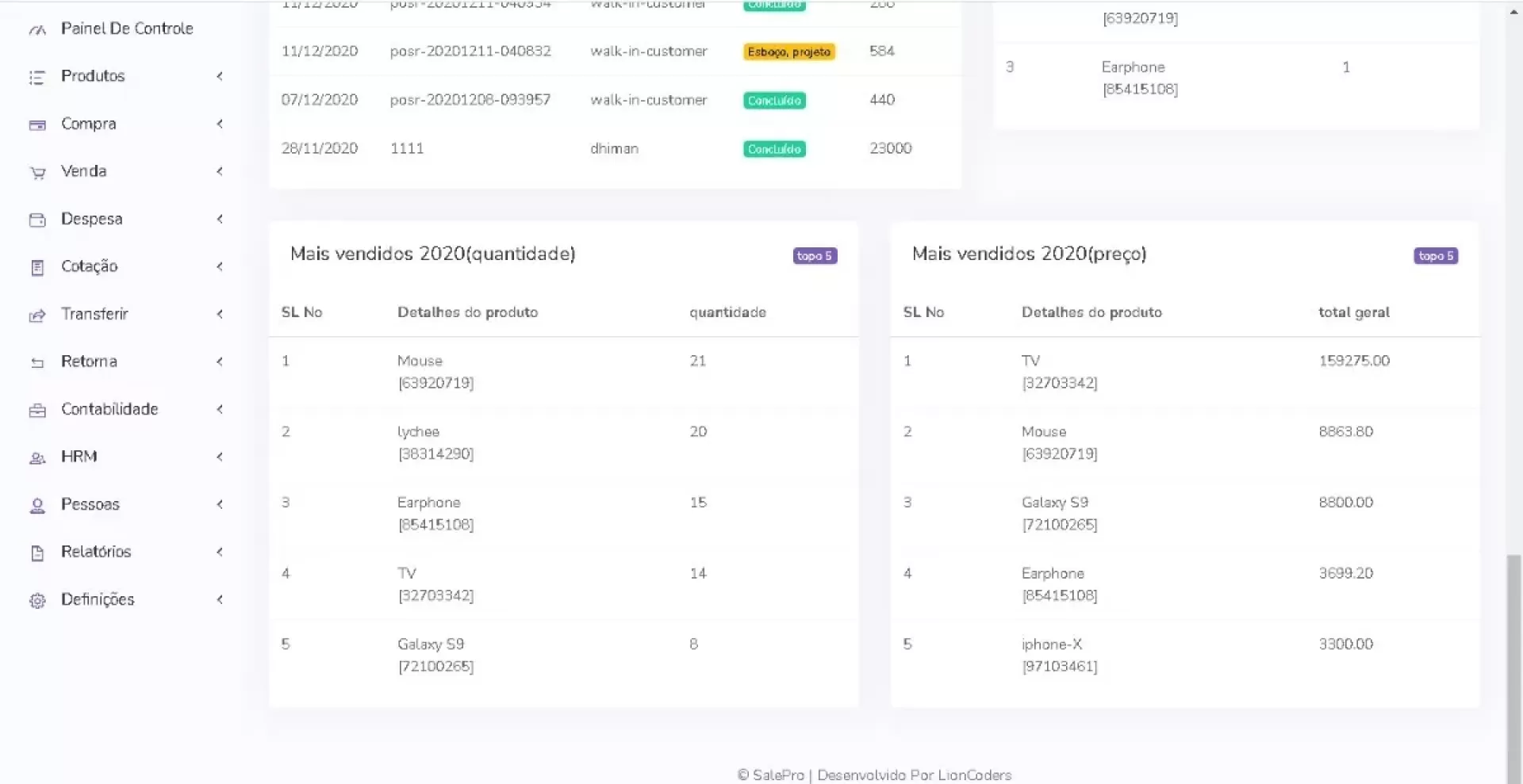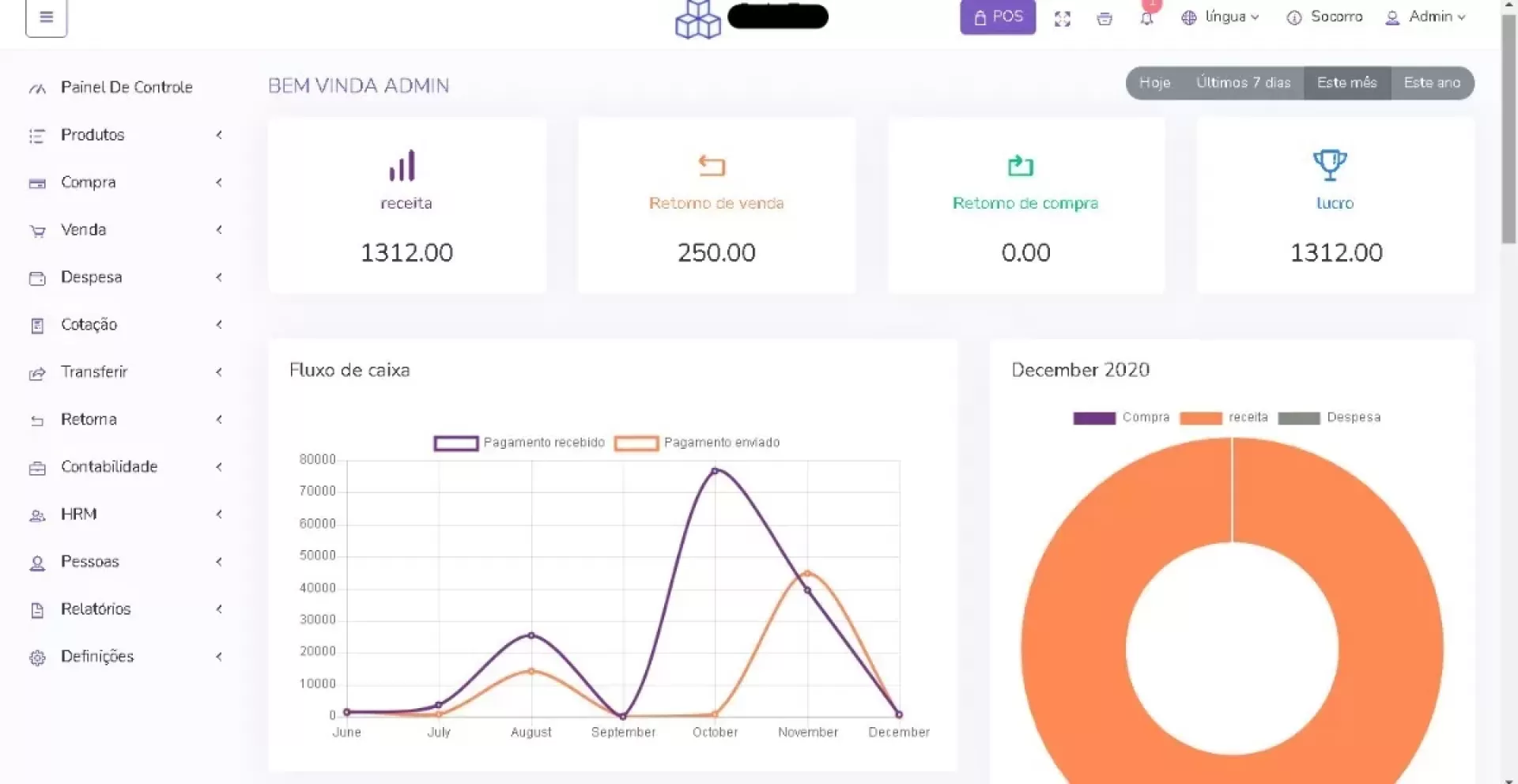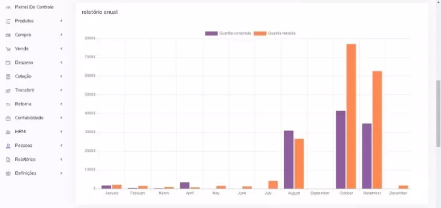- Visão geral de venda, compra, devolução de venda, devolução de compra e lucro.