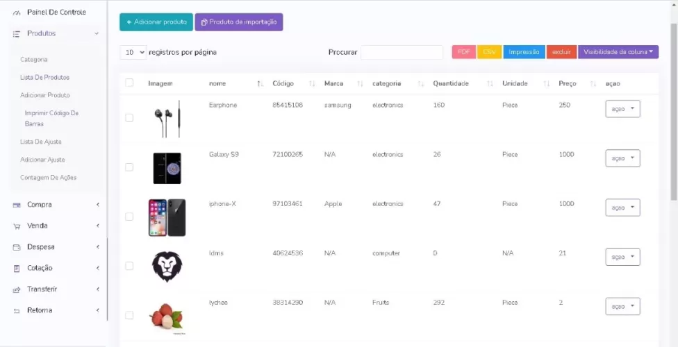 - Exporte o conteúdo da tabela para CSV, PDF ou Imprimir (colunas escolhidas)