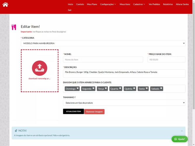 Configuração Completa do Negócio: Personalize seu estabelecimento conforme suas necessidades, desde o cardápio até detalhes como nome do site, descrição e integração direta com WhatsApp.