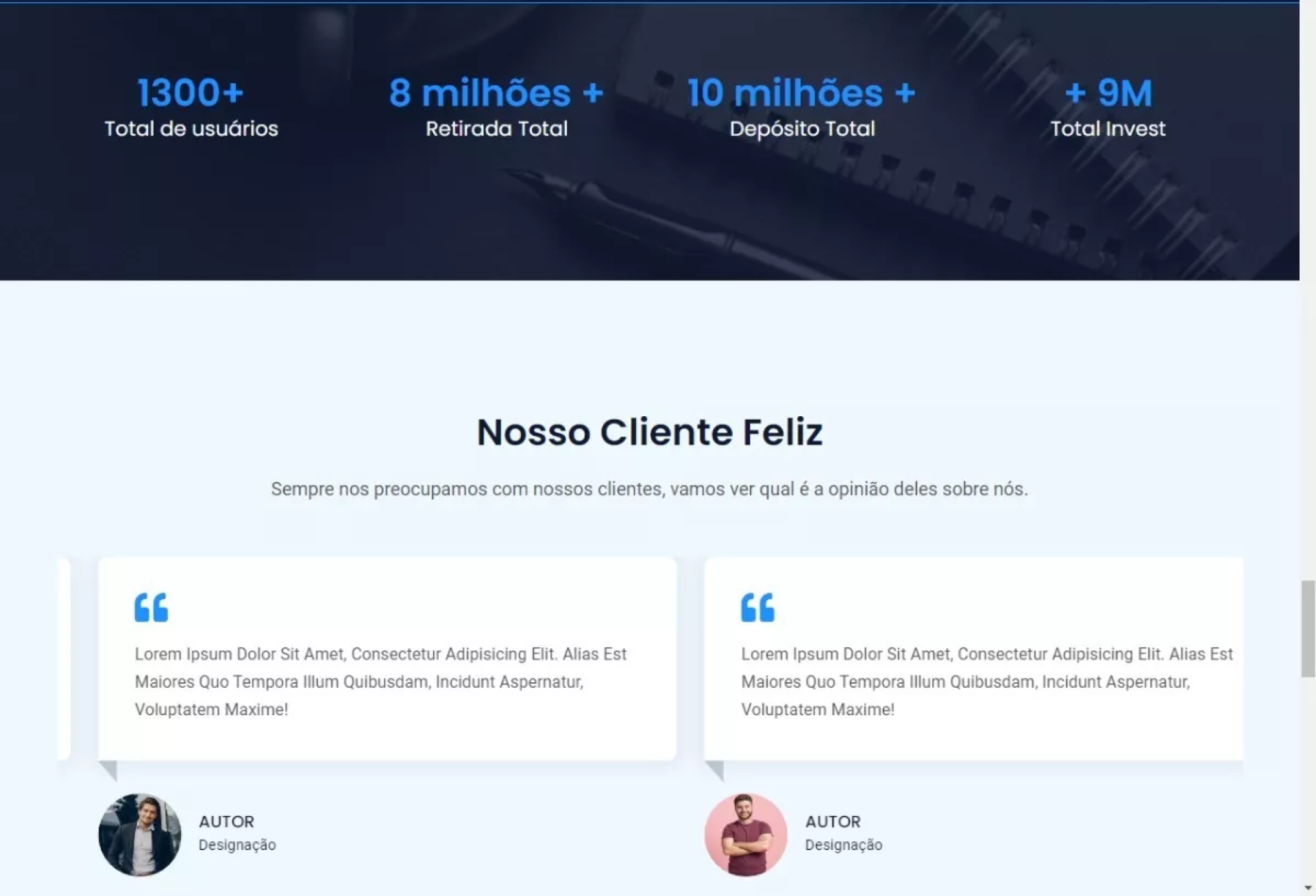 - Configurações de TOS e depoimentos.