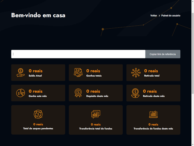 Plataforma de investimento on-line Multiprrpose Wallet e Banking. É uma plataforma web totalmente funcional para gerenciar sua carteira, plataforma bancária e de investimento online de maneira conveniente. Ele permite que você registre usuários, receba depósitos, remeta ganhos e processe ganhos de ROI de nível único e multinível. você poderá configurar sua própria plataforma o mais rápido possível. Os principais gateways de pagamento e criptomoedas suportados incluem Stripe, Coinpayments (BTC, ETH, LTC, DASH, XRP e BCH) e Paypal.
