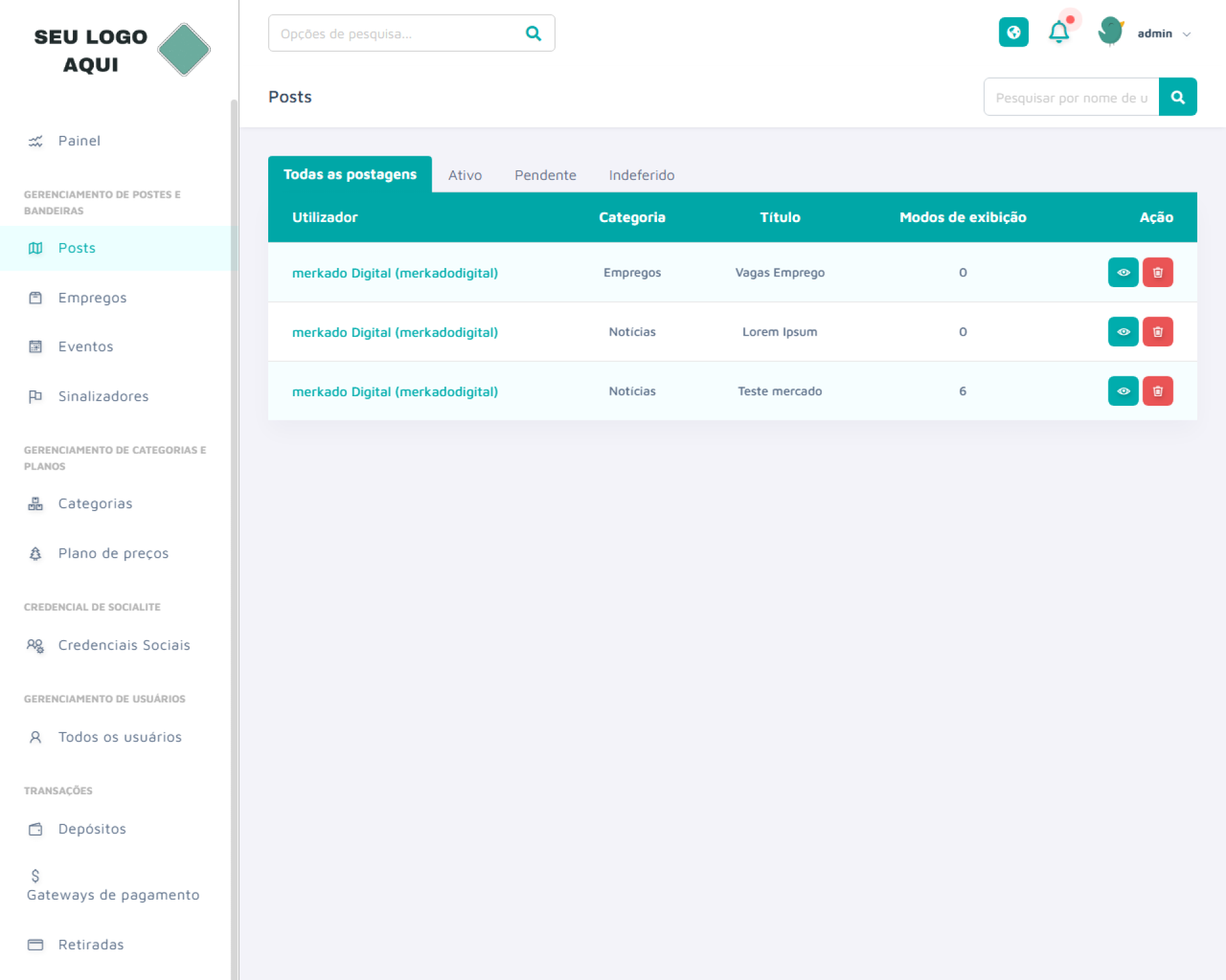 Nome de usuário: admin | Senha: admin