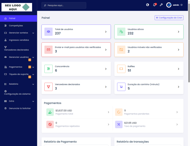 O Sistema pode ser acessado de um PC e de um celular de serviço completo. É facilmente instalável e controlável através do painel de administração e vem com um design responsivo, alta segurança e interface de usuário interativa. plugins de suporte, LiveChat, Google ReCaptcha, análises, gateway de pagamento automático, cartões, moedas e criptomoedas. Também estamos aqui para fornecer o melhor suporte, instalação e personalização, se você precisar. Competição e sorteios que podem ser controlados no painel de administração, imagens Premium, animações em HD, código-fonte completo e diretrizes de instalação de serviço completo com documentos