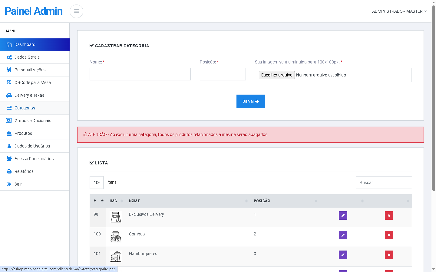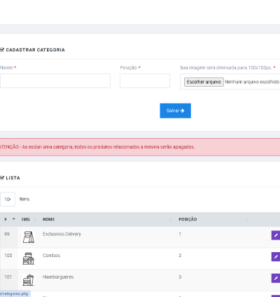 Configuração de Ordem das Categorias do Cardápio: Organize o cardápio de acordo com suas preferências e necessidades.