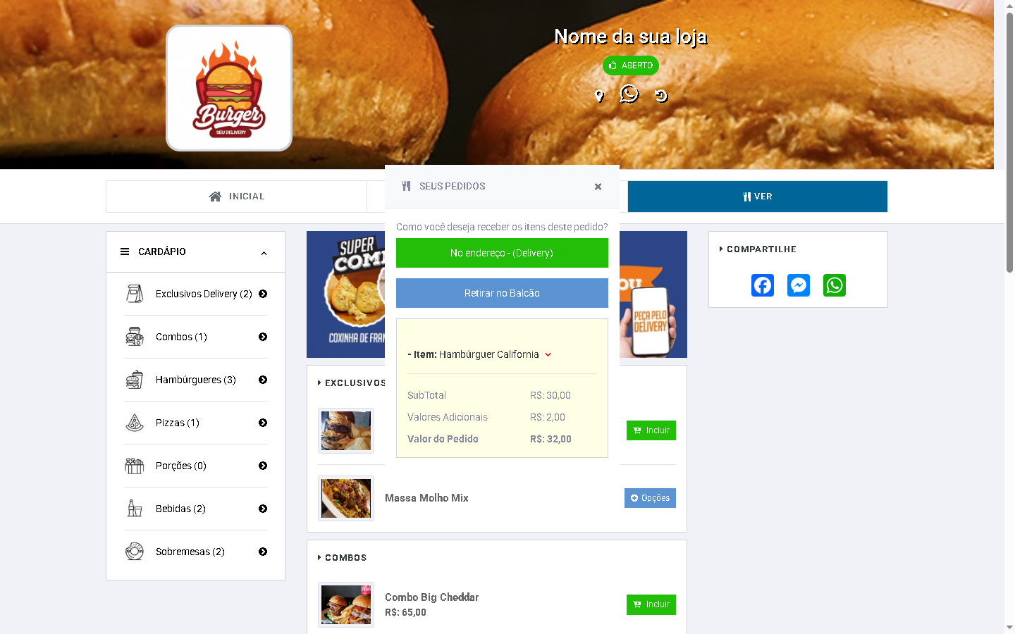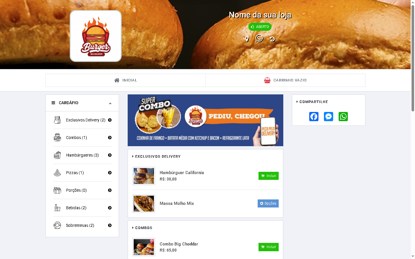 QR Code e Compartilhamento Social: Facilite o acesso ao cardápio por QR code e redes sociais.