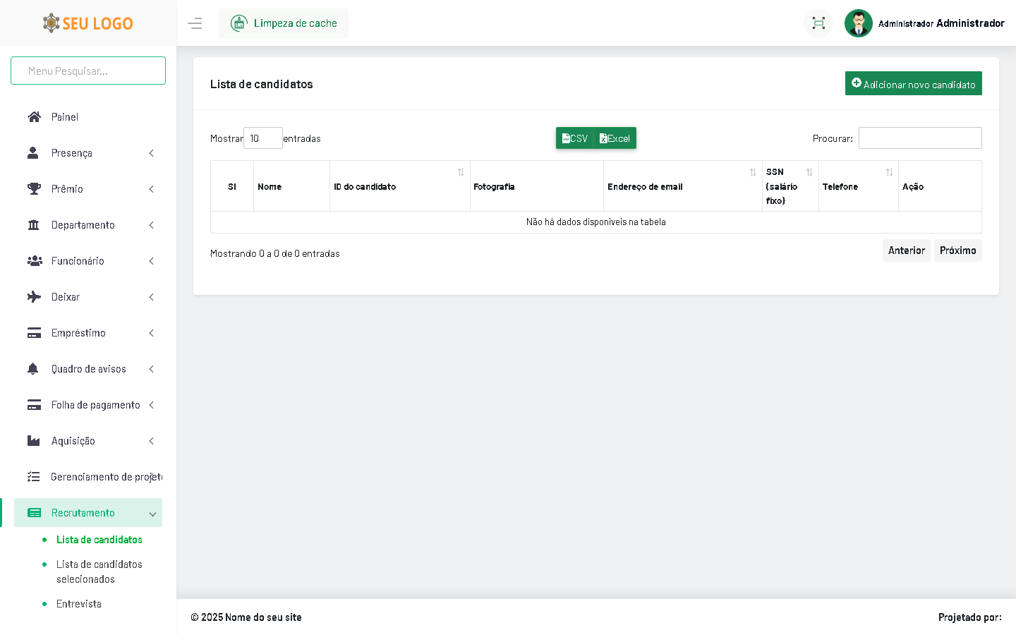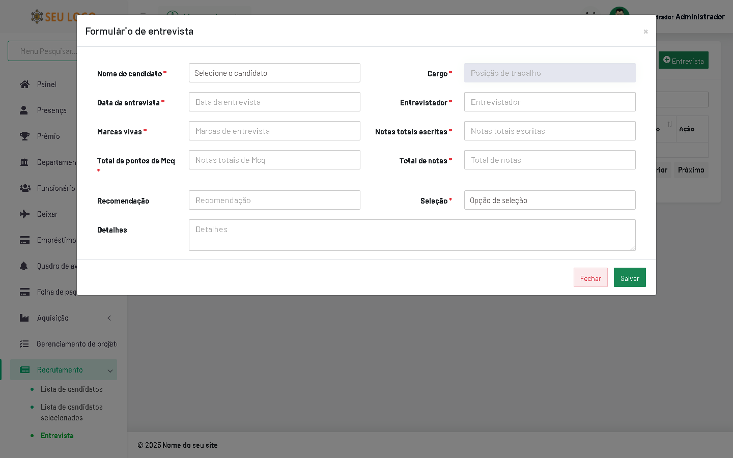 Processo completo de recrutamento de funcionários