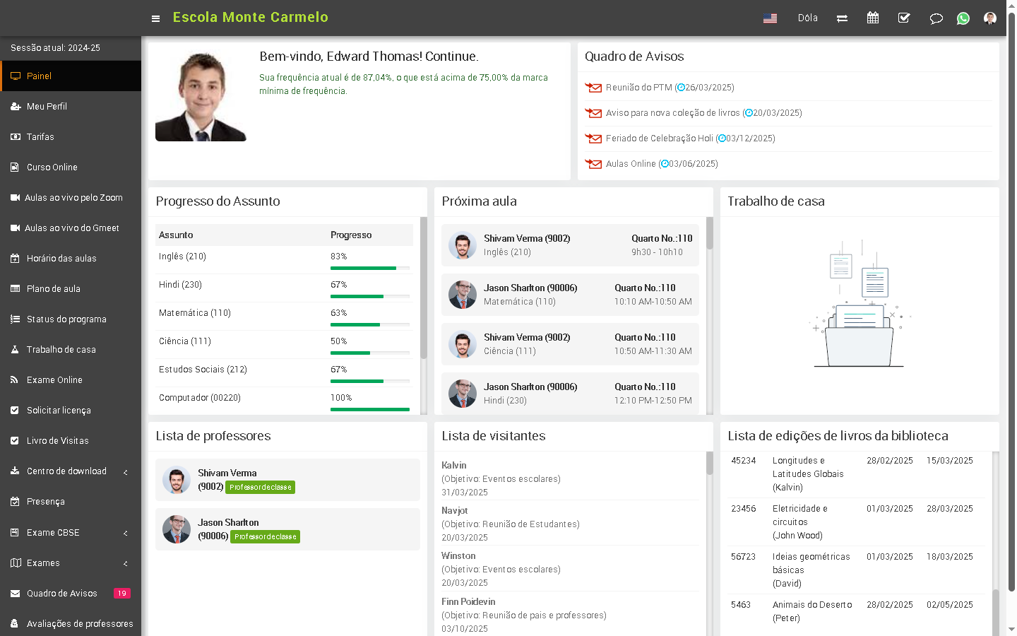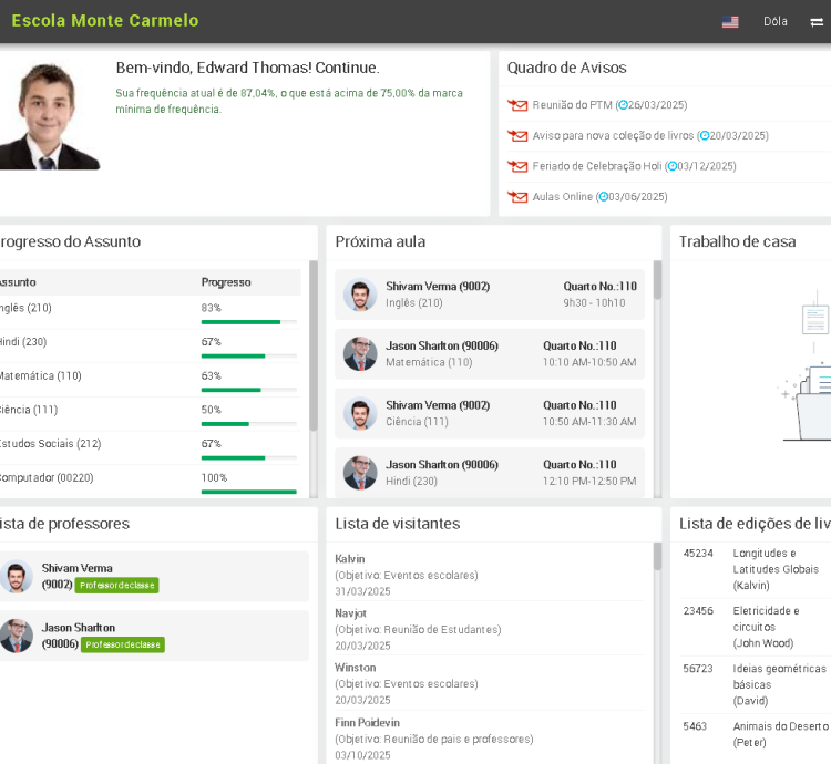 Gerencie a frequência dos alunos de forma inteligente em poucos cliques. Obtenha um relatório de frequência mensal por seção de aula.