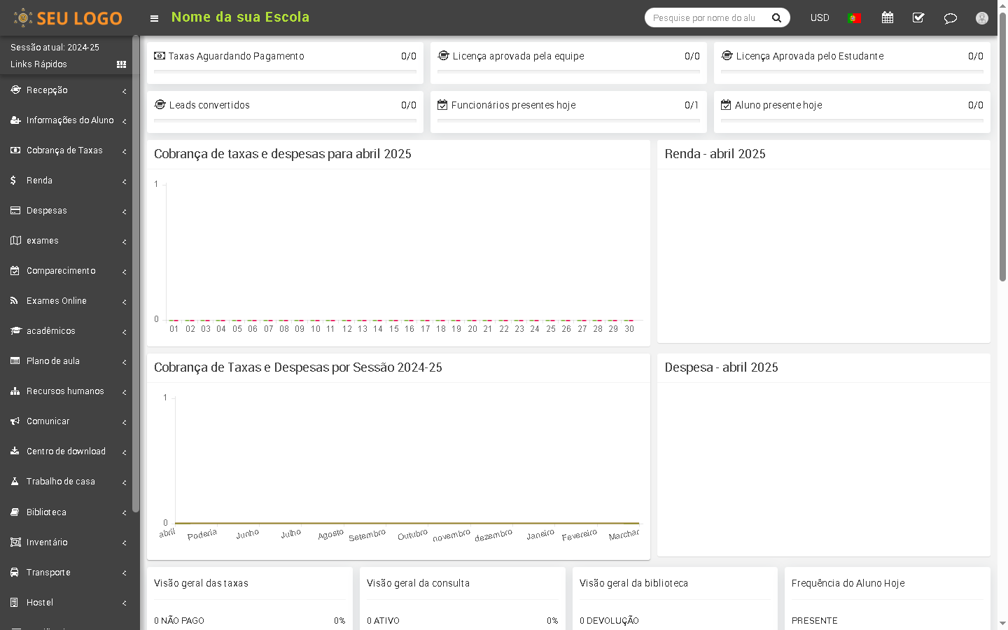 Obtenha vários relatórios com base em alunos, extrato de taxas, transações, saldo de taxas, frequência, exame.