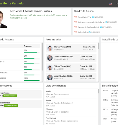 Envie mensagens aos alunos, pais e professores através do quadro de avisos.