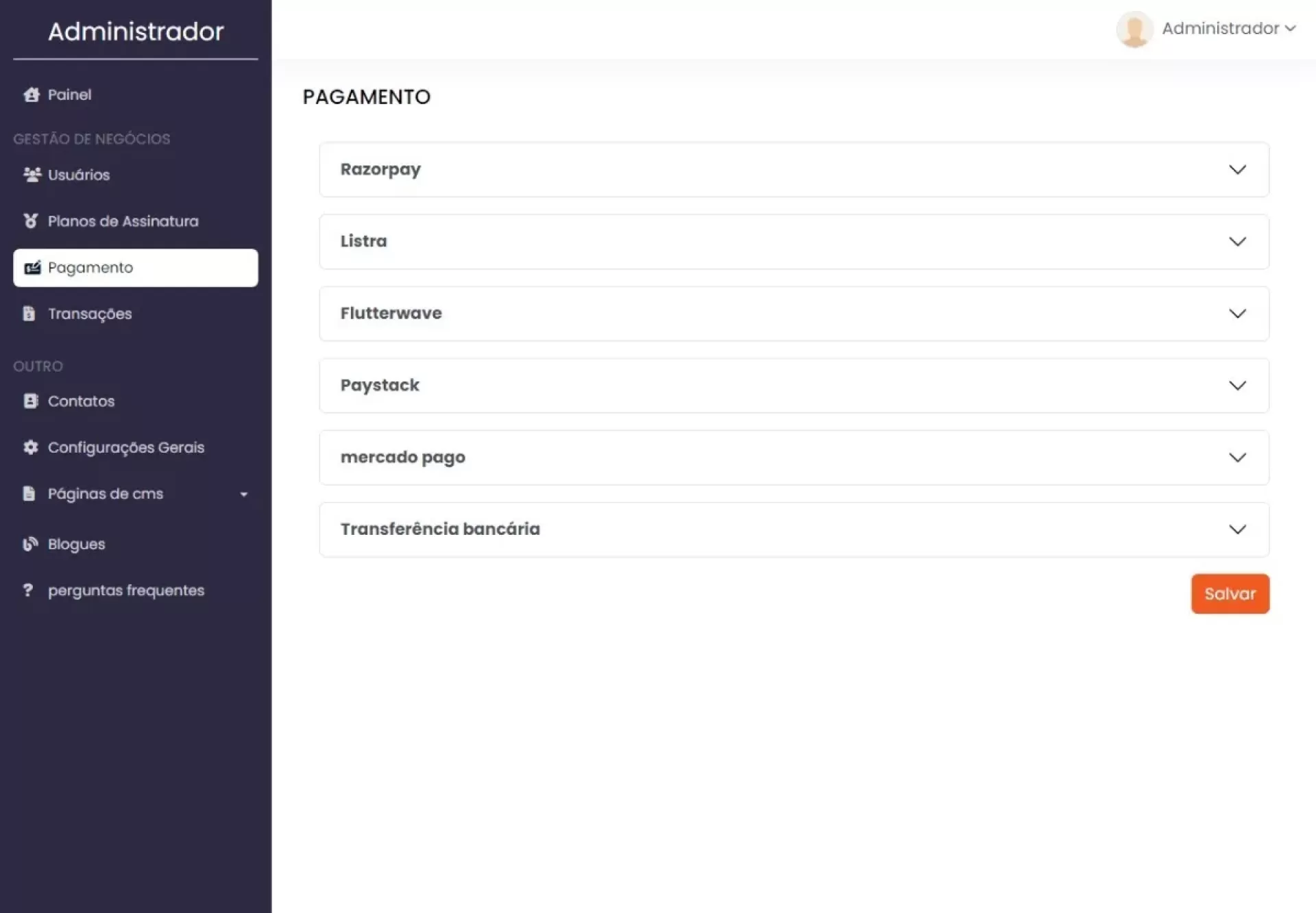 Observação: Este sistema está em inglês, porém pode ser traduzido para qualquer idioma.