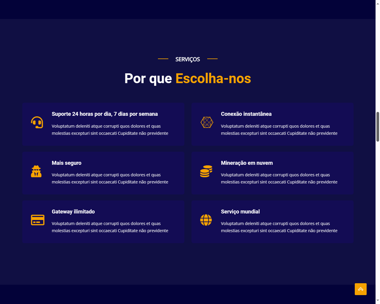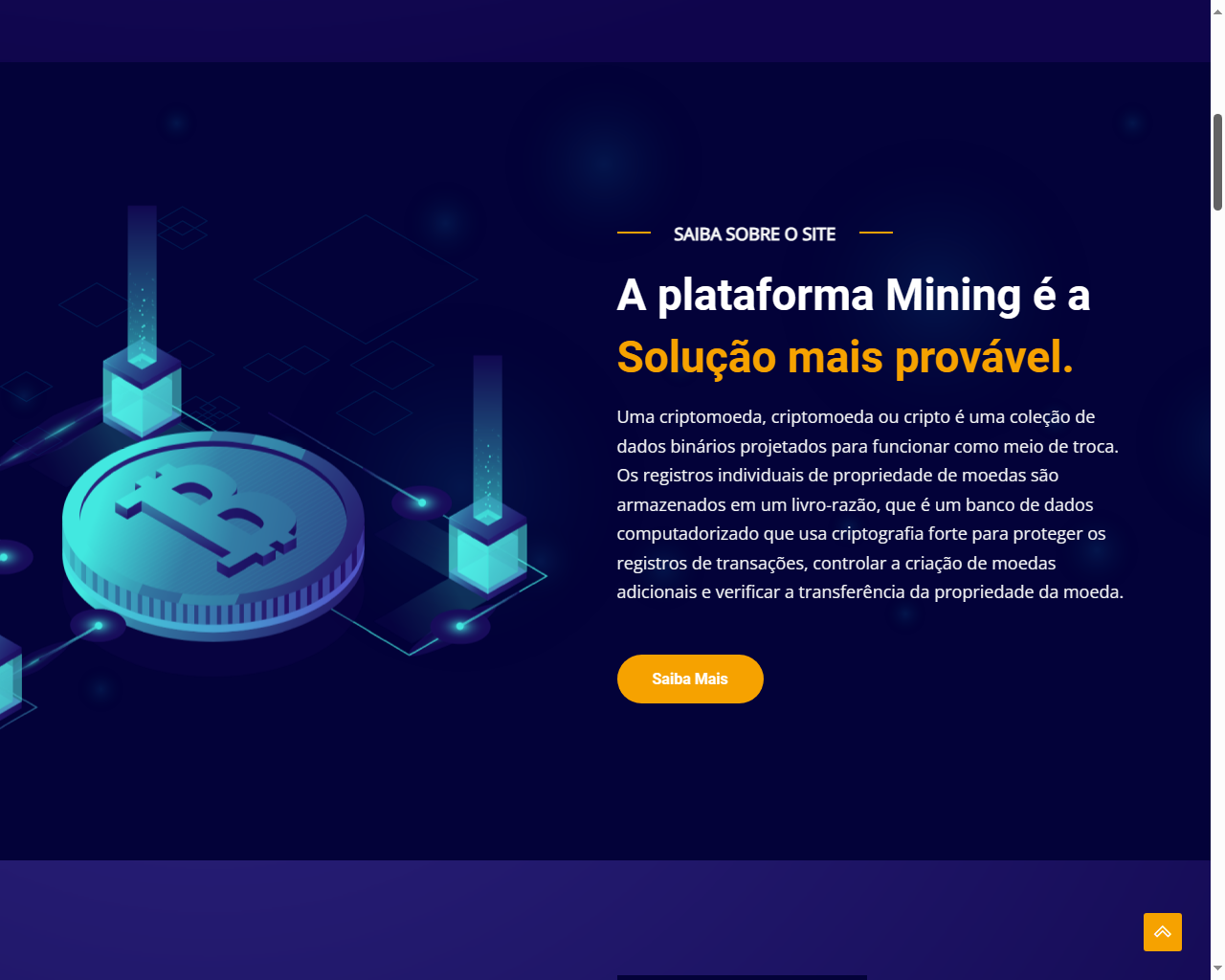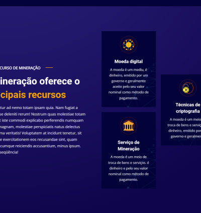 Plataforma perfeita para apresentar sua empresa. Inclui muitos recursos, bem organizado, por isso é muito fácil alterar todo e qualquer conteúdo. É tudo o que você procura para o seu site de mineração em nuvem.