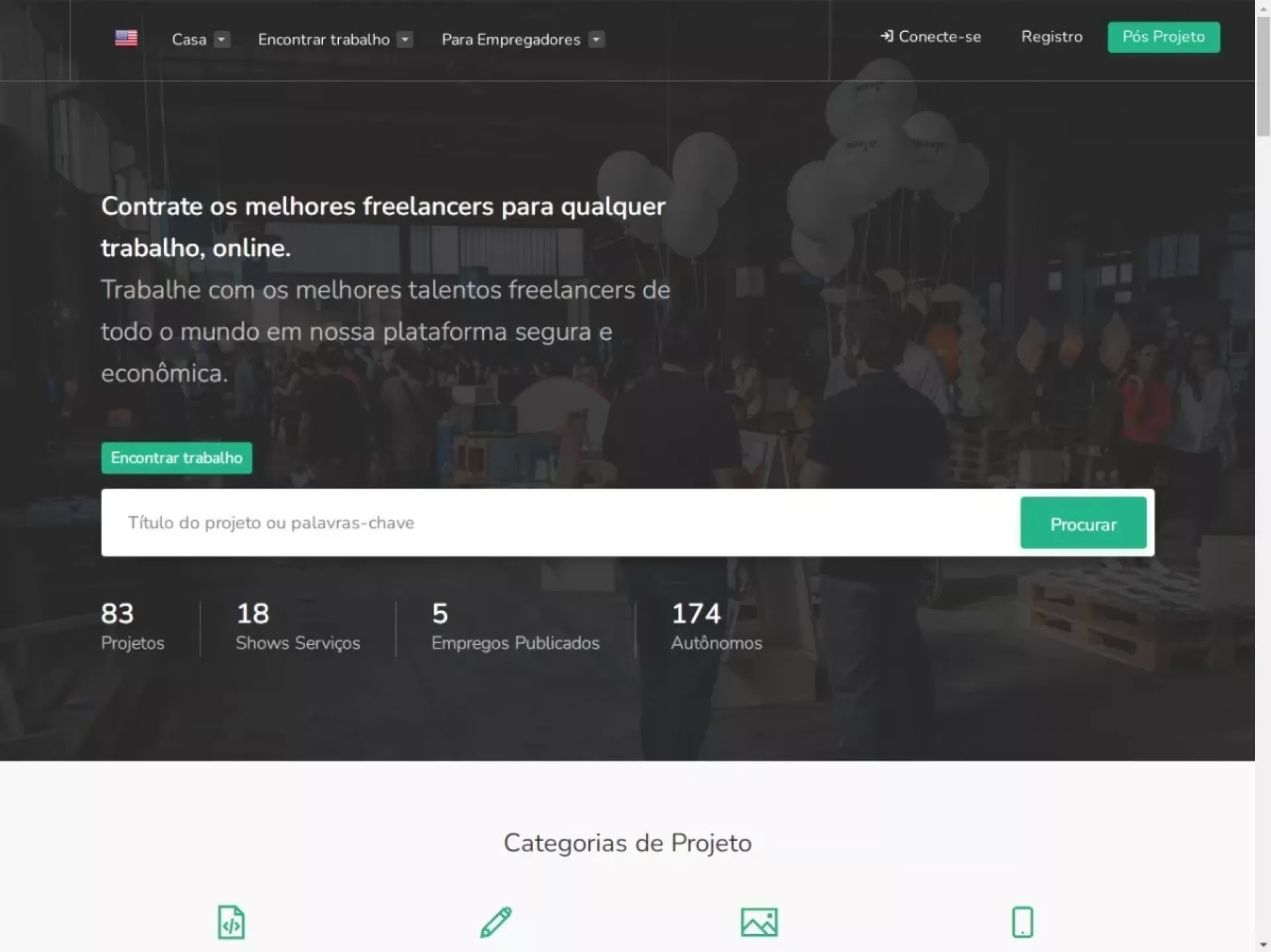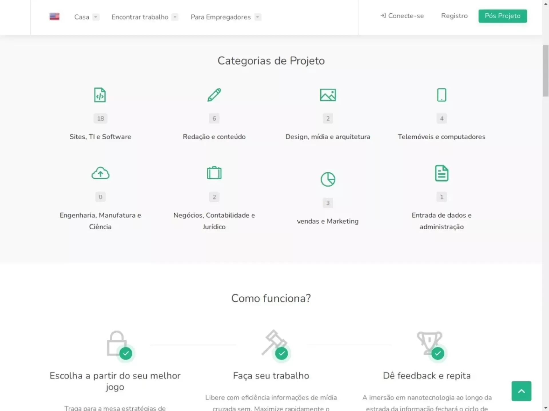 Esse recurso fornece a você uma pesquisa extremamente rápida. Os usuários podem pesquisar projeto, trabalho ou freelancer usando o título do projeto, palavra-chave, selecionar uma palavra-chave em uma categoria ou direto do resultado rápido.