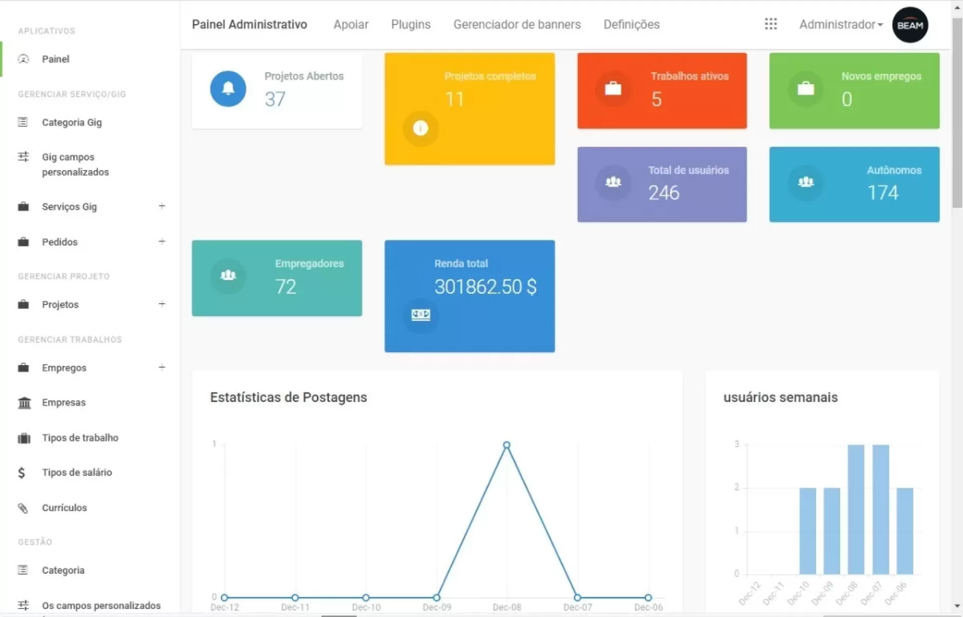Este script de clone freelancer oferece várias ferramentas de monetização, desde a cobrança de uma taxa de listagem até a cobrança de uma taxa de listagem em destaque e a cobrança de uma assinatura mensal. Você também pode cobrar por banners através do nosso sistema de gerenciamento de banners.