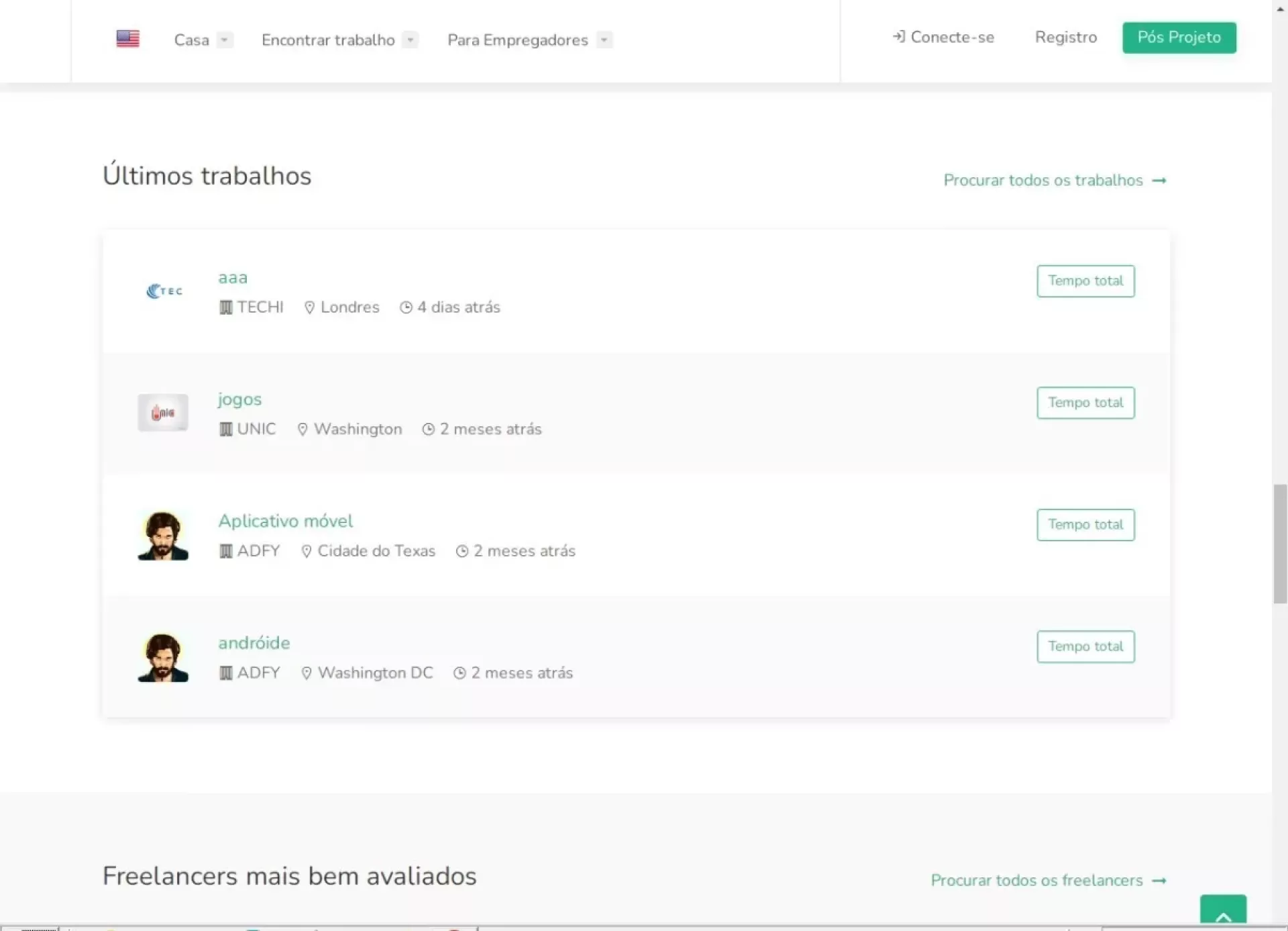 - Página de pesquisa de freelancers – Uma opção de ativar/desativar disponível.