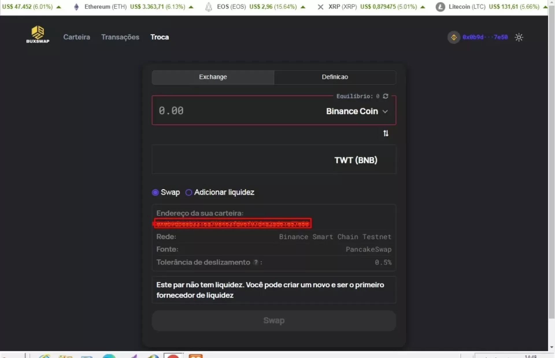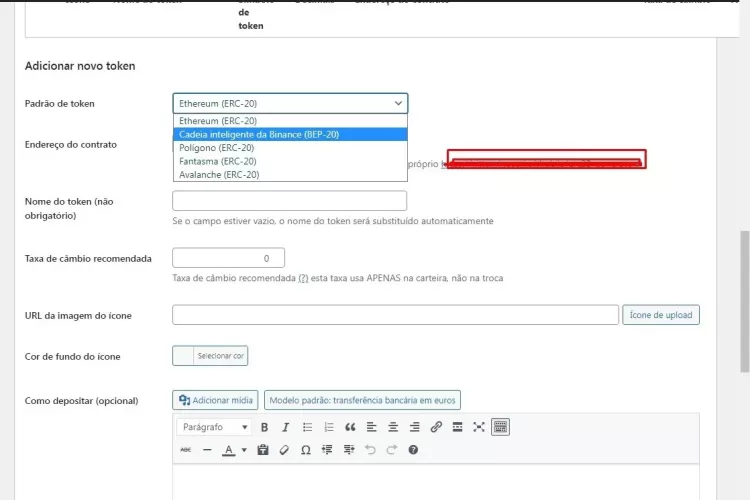 - Adicionar token ERC20 próprio, ativo BSC