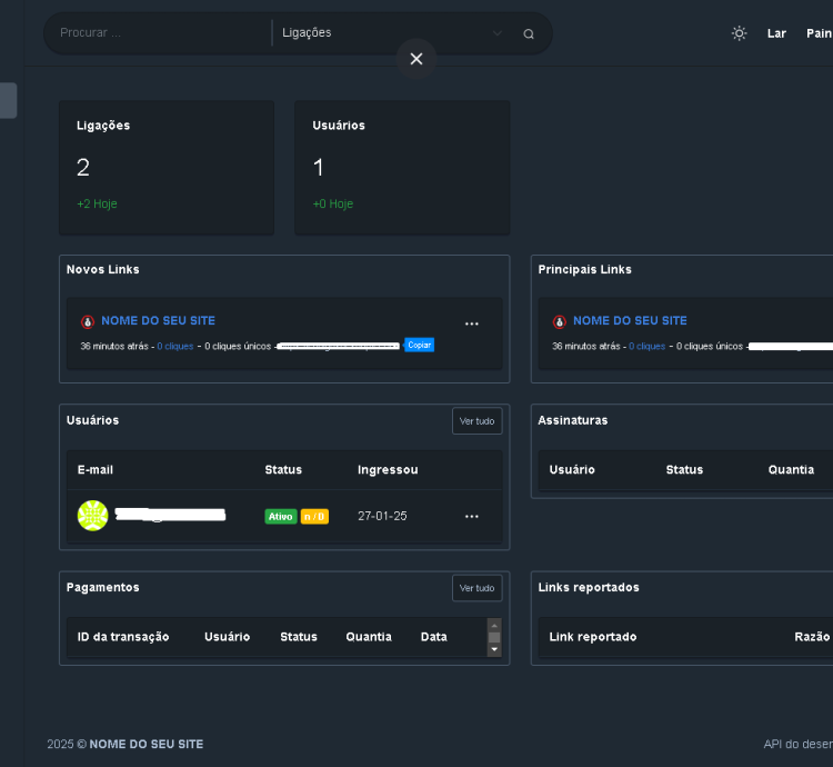 - Sistema de API avançado: O poderoso sistema de API exige que os usuários se autentiquem usando uma chave de API exclusiva associada a eles no registro. Todos os URLs gerados por um usuário registrado são salvos automaticamente em sua conta.