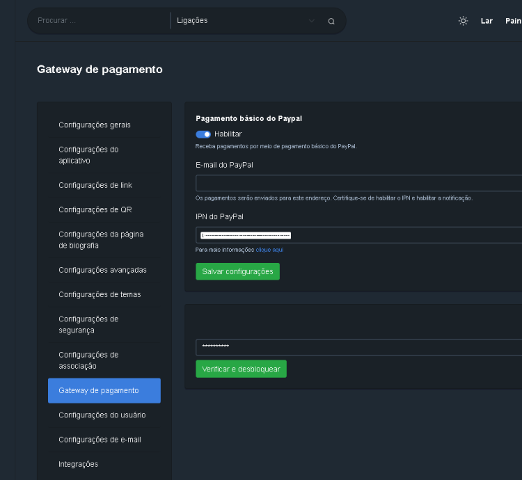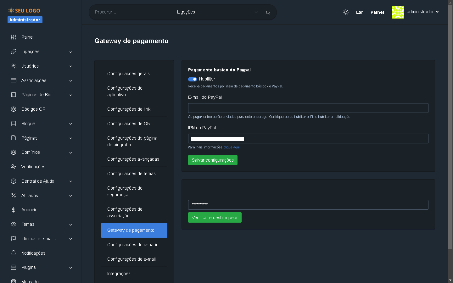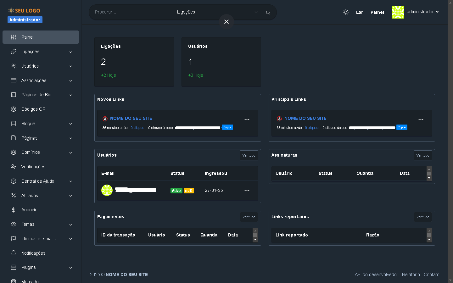 E-mail/Nome de usuário: admin@gempixel.com / admin
