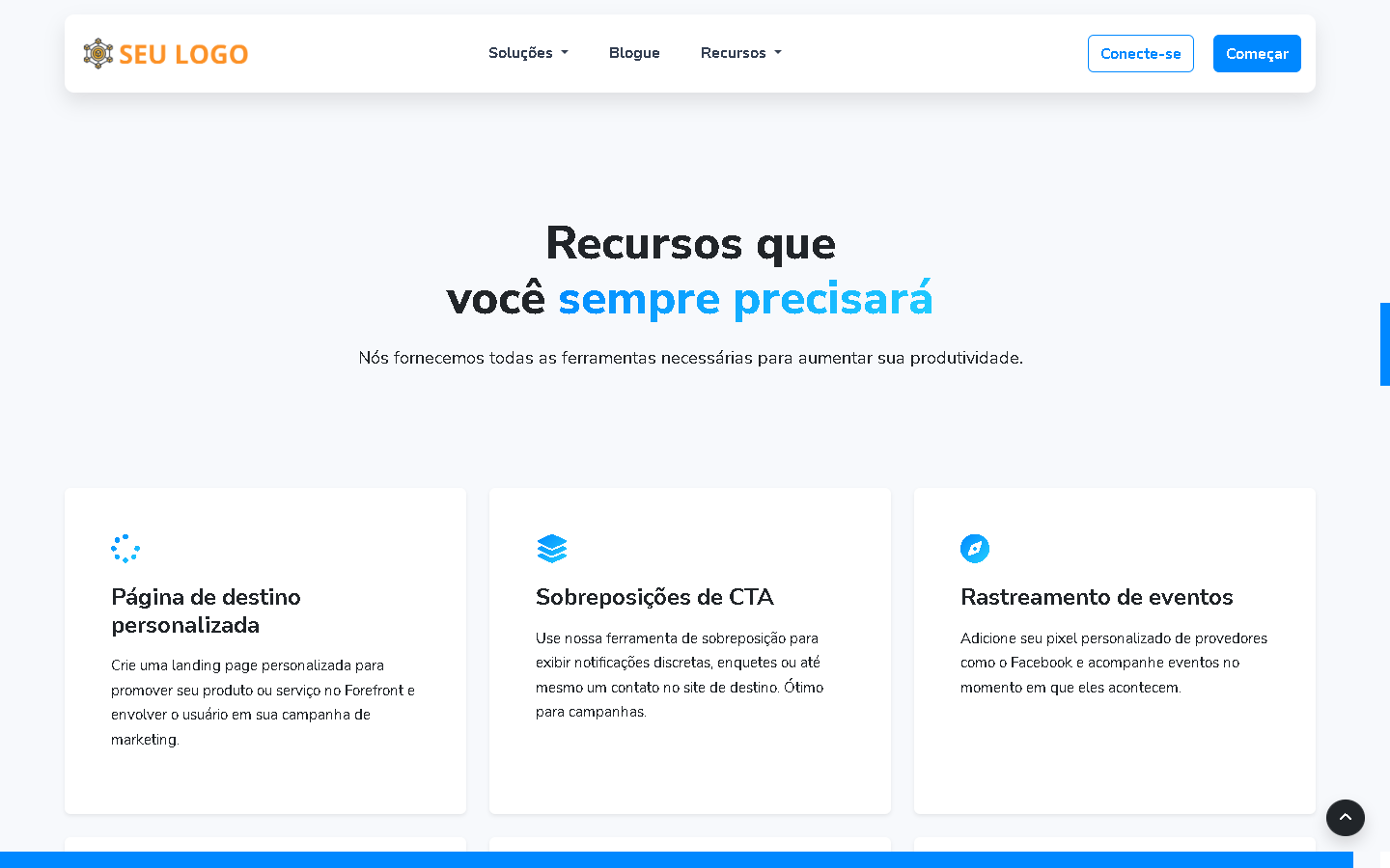 - Rastreamento de pixel: O usuário pode adicionar mais de 15 provedores, incluindo, mas não se limitando a Facebook, Twitter, Bing, Google Ads, Google Tag Manager, Google Analytics, Snapchat, Reddit, Quora, Pinterest e muito mais.