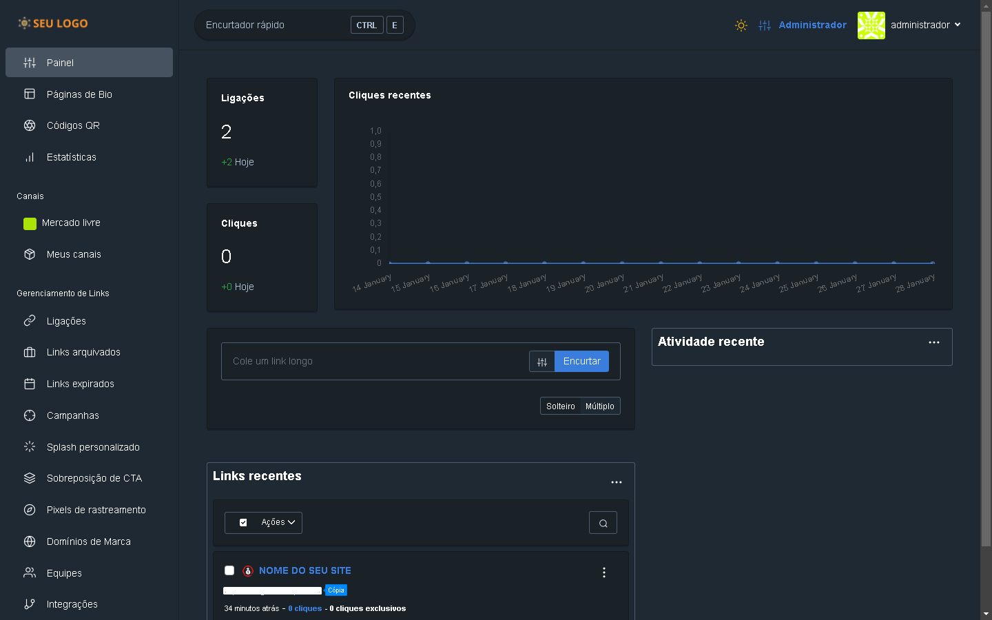 - Parâmetros personalizados e UTMs: O usuário pode adicionar parâmetros personalizados como tags de afiliados ou usar o sistema para adicionar UTMs.