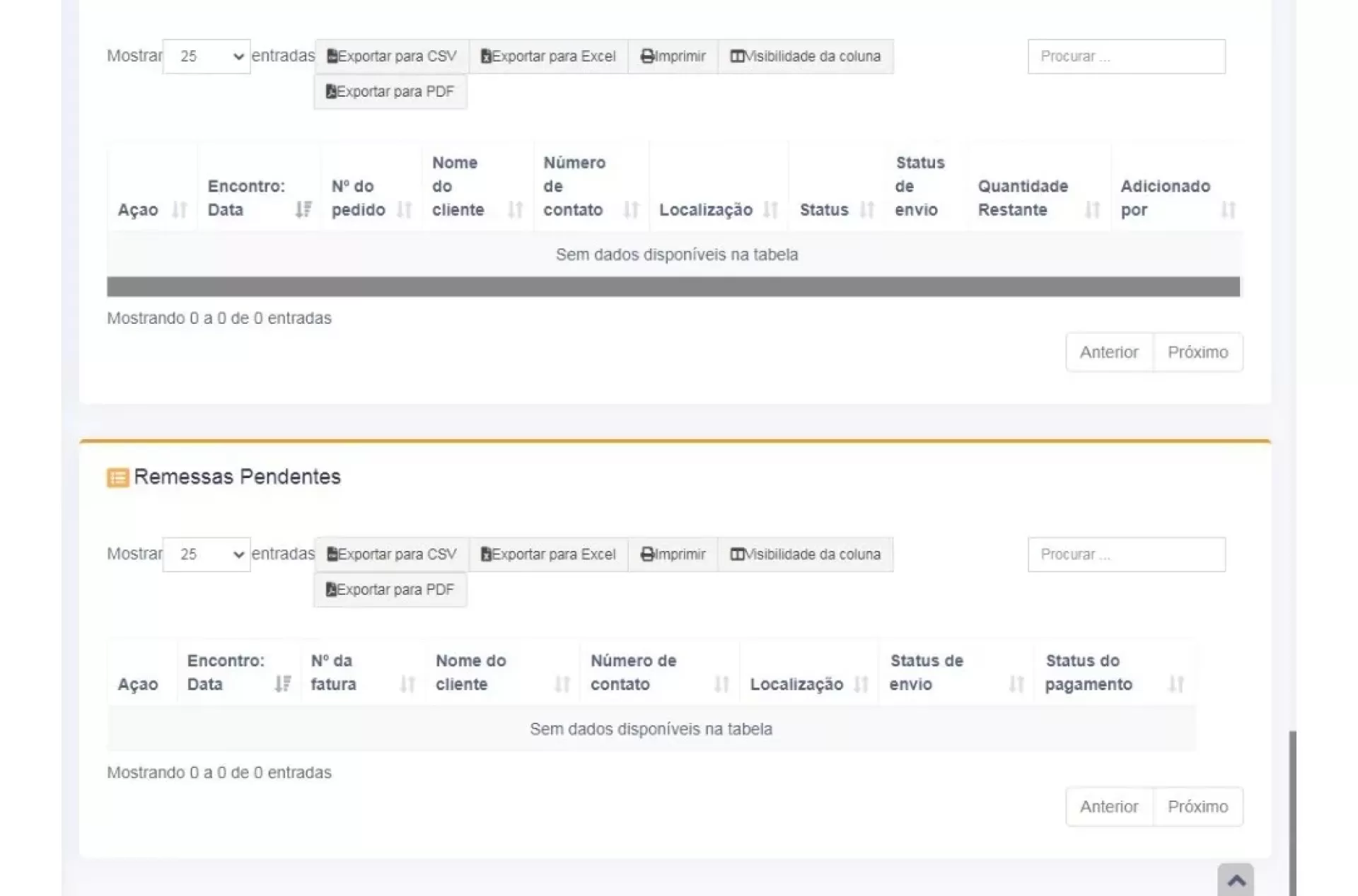 Relatórios de contato