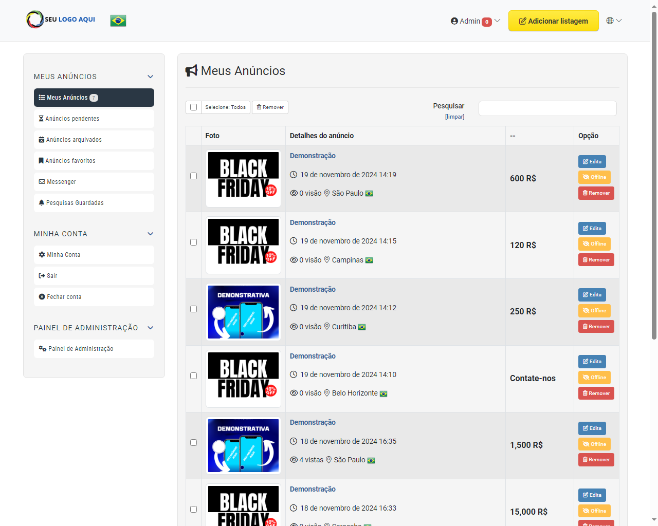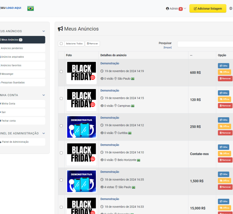 - Sistema de mensagens entre vendedores e compradores integrado (NOTA: Somente compradores podem iniciar a conversa)