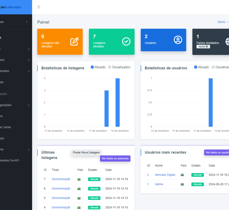 - Sistema de usuários, funções e permissões (ACL) integrado no painel de administração