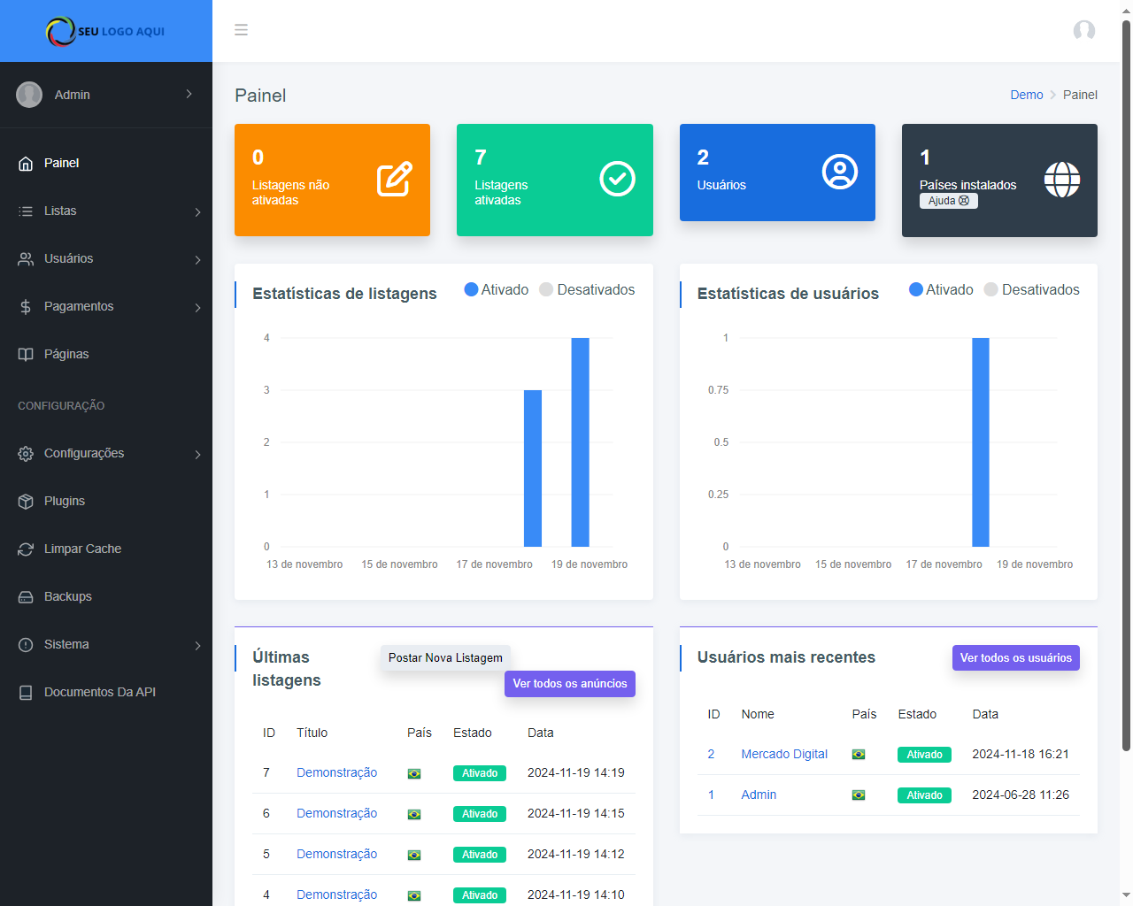 - CMS para páginas estáticas (Crie páginas como: Sobre nós, FAQ, Termos e privacidade, etc.)