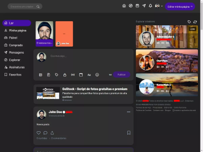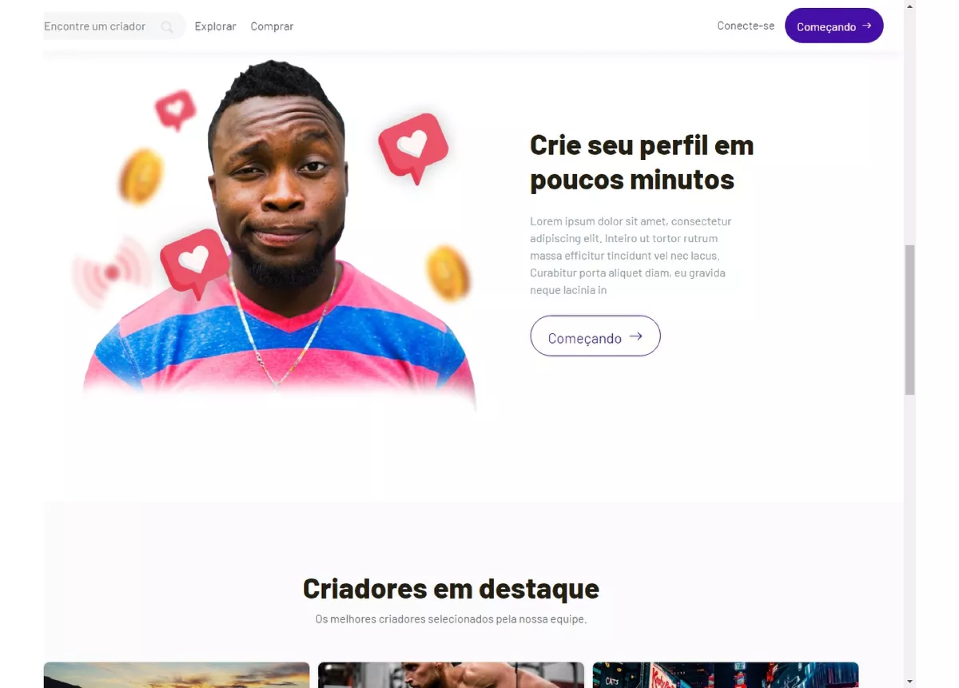 - Pesquise criadores por nome/nome de usuário, categorias e filtre por destaque e novo