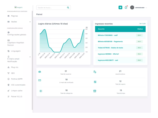 - Cupons de acesso