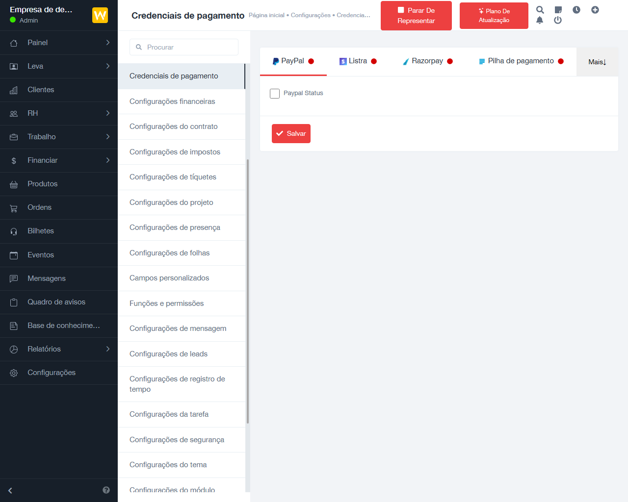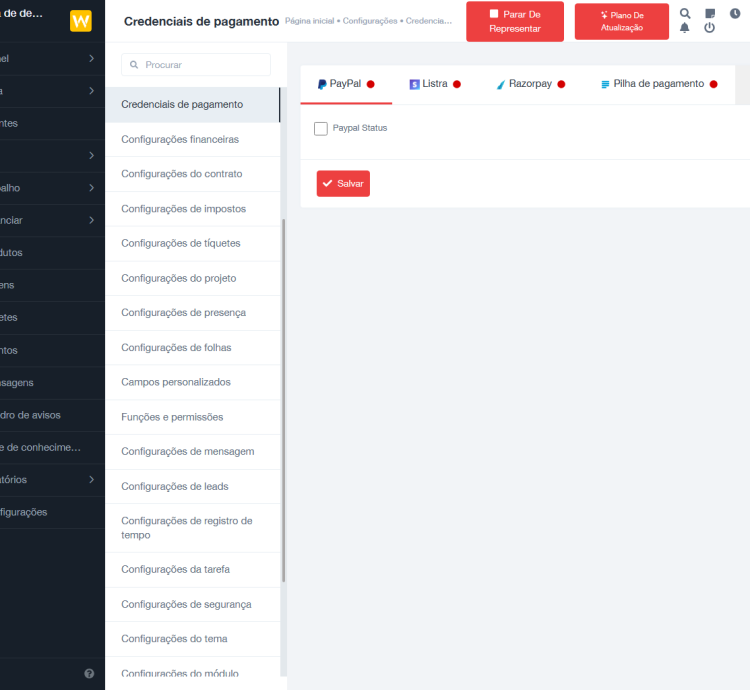 - Receba pagamentos via gateways PayPal, Stripe, payfast, flutterwave, mollie e Razorpay