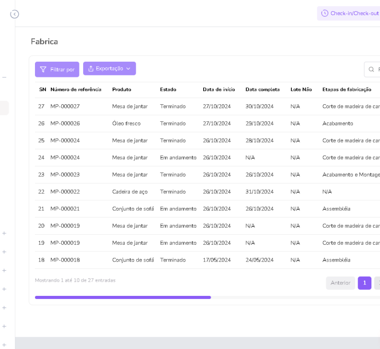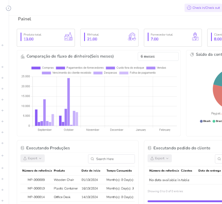Estoque atual e estoque flutuante (monitoramento de matérias-primas atribuídas à produção em andamento)
