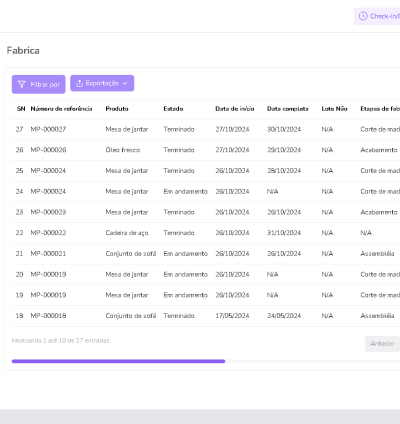 Facilidade: modificação/modificação de lista técnica no nível de produção
