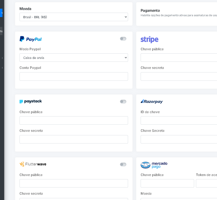 - Gerenciar configurações do site: se você quiser adicionar o nome do seu site, título, e-mail, telefone, sobre, logotipo, favicon, e-mails, moeda e opções básicas de SEO, links sociais, você precisa ir para a seção "Painel > Configurações" na barra lateral esquerda. Você pode gerenciar todas as opções aqui.