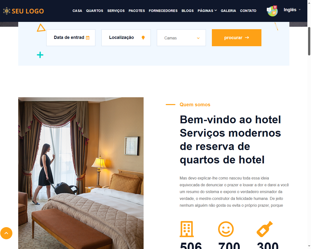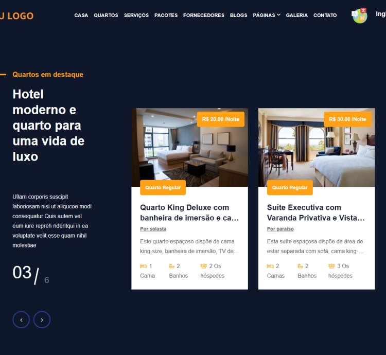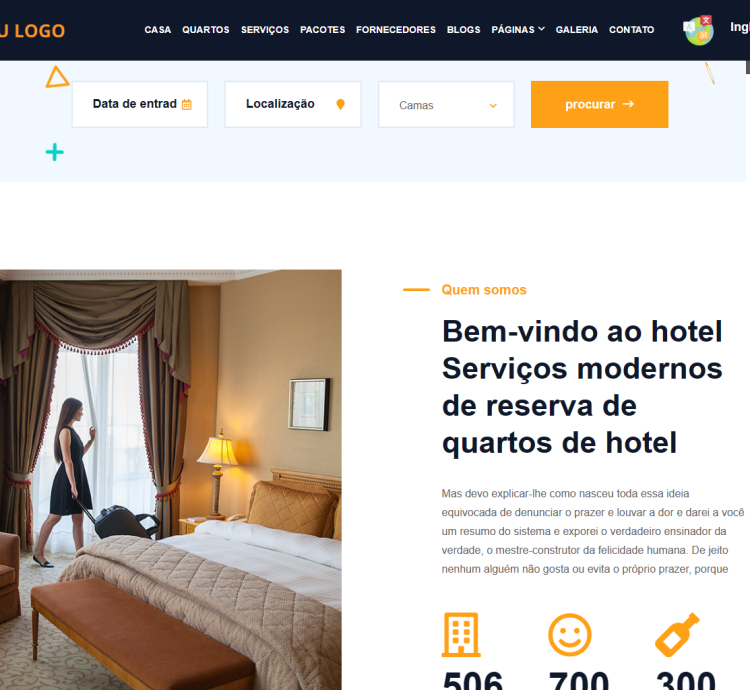 O MultiHotel oferece 15 modelos diferentes. Sua parte de frontend é totalmente multilíngue e suportada por RTL