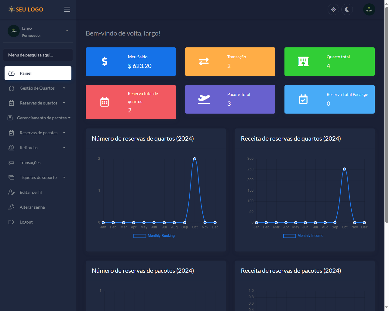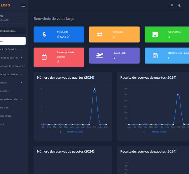 O administrador pode configurar uma comissão baseada em porcentagem para cada reserva de quarto de hotel e reserva de pacote turístico. O administrador também pode configurar a cobrança para cada método de retirada. Os fornecedores podem enviar solicitações de saque ao administrador.