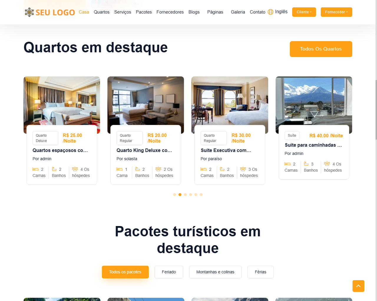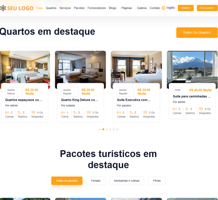 ✅ Reservas de pacotes turísticos ✓ Cupons ✓ Autenticação / Reserva de Convidado ✓ Opção de Ativação/Desativação de Reserva de Hóspede ✓ E-mail ao Cliente com Fatura ✓ Configuração de Cobrança de Status