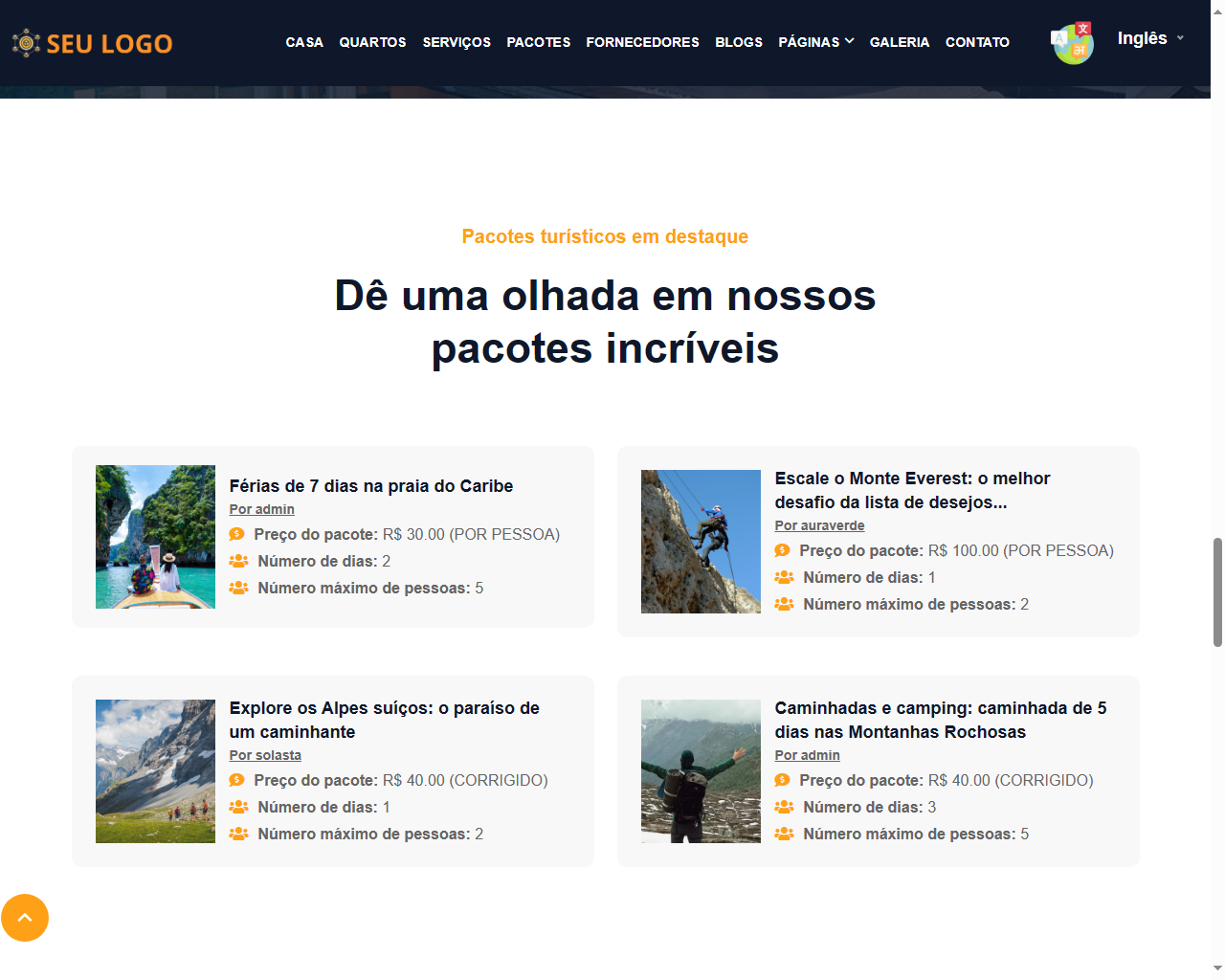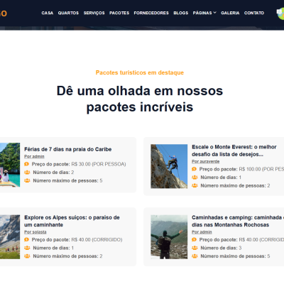 ✓ Pacotes ✓ Locais de excursão ✓ Pacote turístico de um dia / vários dias ✓ Preços fixos / por pessoa ✓ Classificação do pacote (ativar / desativar)