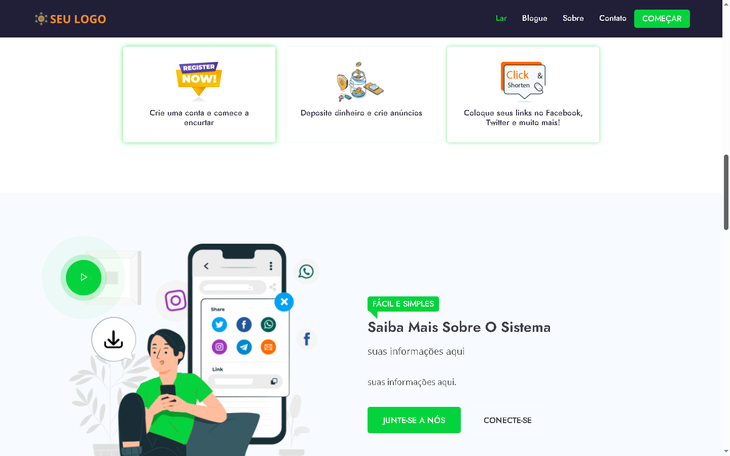 Encurtador de URL premium, ANÚNCIOS GRATUITOS e de suporte.