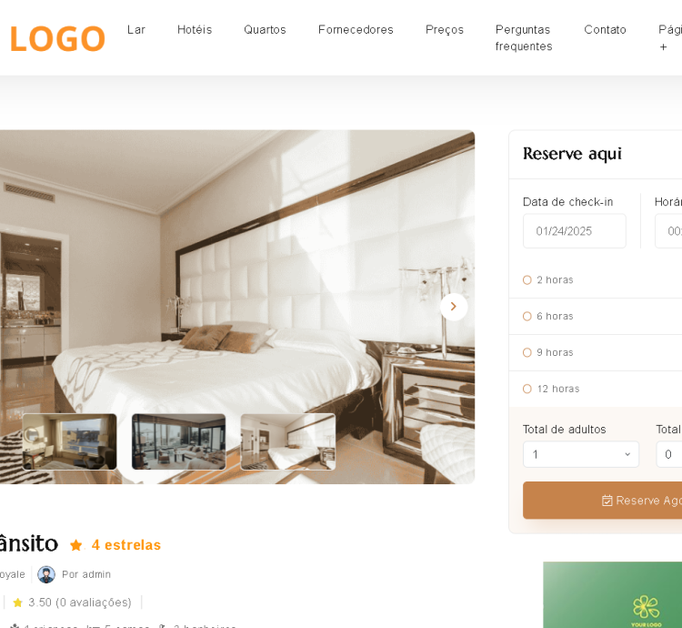 ✅ Reserva de quarto por hora