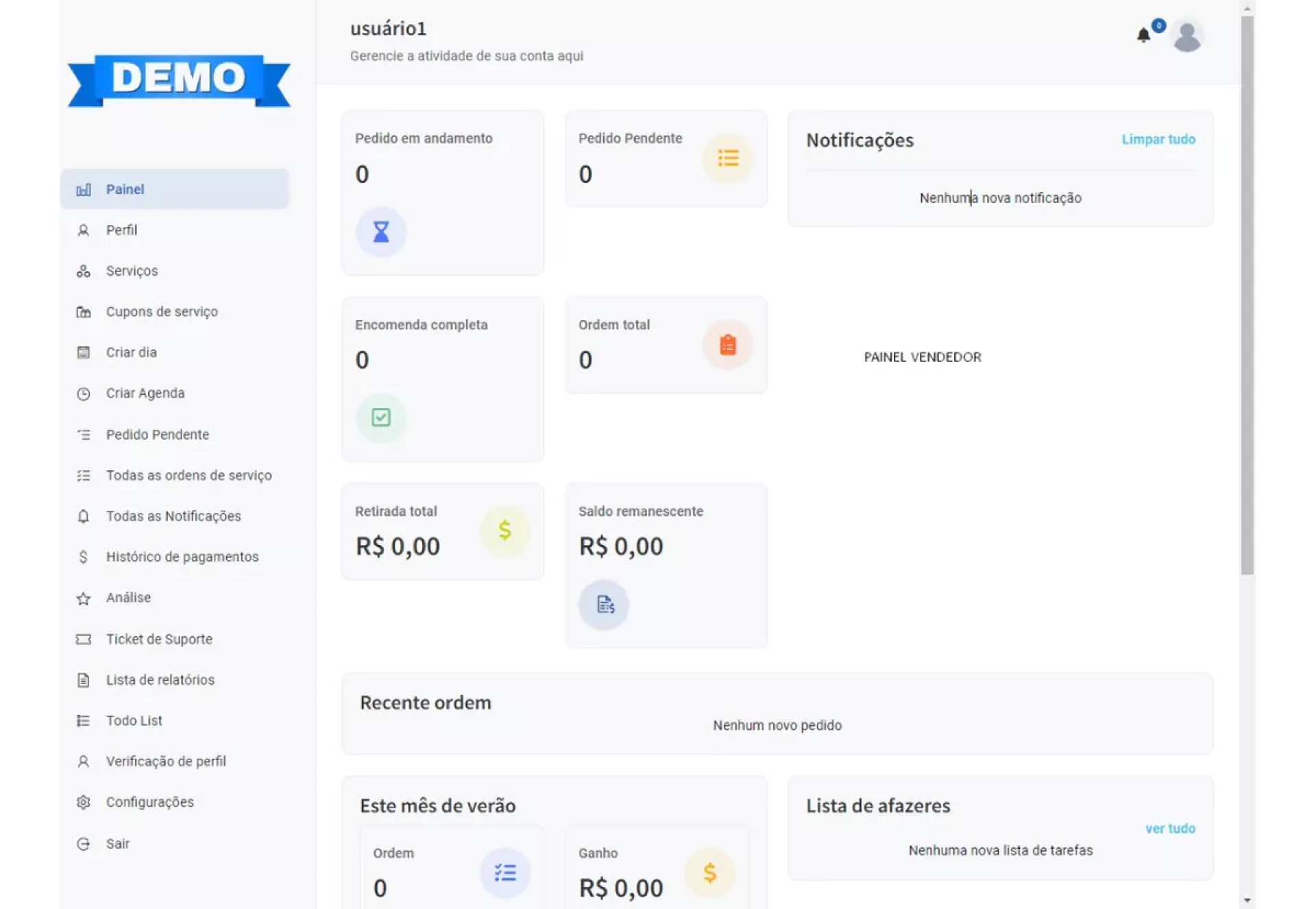 Painel do usuário